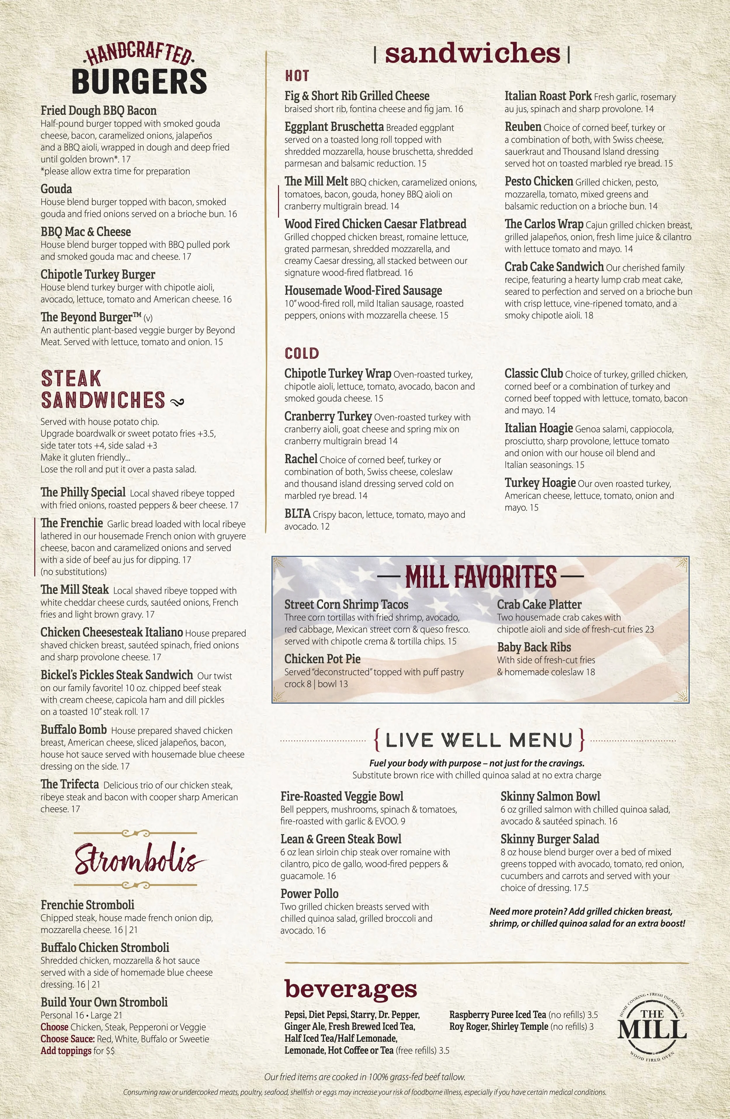 We're a BYOB, so bring your own, enjoy great food & unwind. The rustic mill feel of the upstairs dining area creates a comfortable space for neighbors & patrons to relax. Visit "Upstairs at The Mill" for our dining area (reservations often required), or head to the counter on the first floor for self-service & take out.